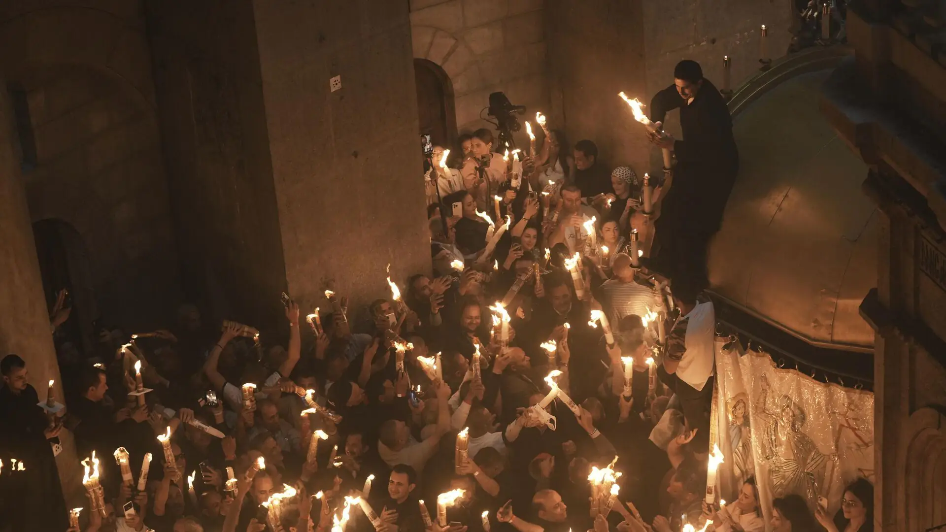 Благодатный огонь сходит в храме Гроба Господня в Иерусалиме в Великую субботу накануне праздника Воскресения Христова — Пасхи. Русская православная церковь и другие христианские церкви, живущие по юлианскому календарю, встречают Светлое Воскресение Христово в этом году 12 апреля. По традиции частицы Благодатного огня развозят в разные страны как святыню. Он символизирует нерукотворный свет Воскресения Христова.