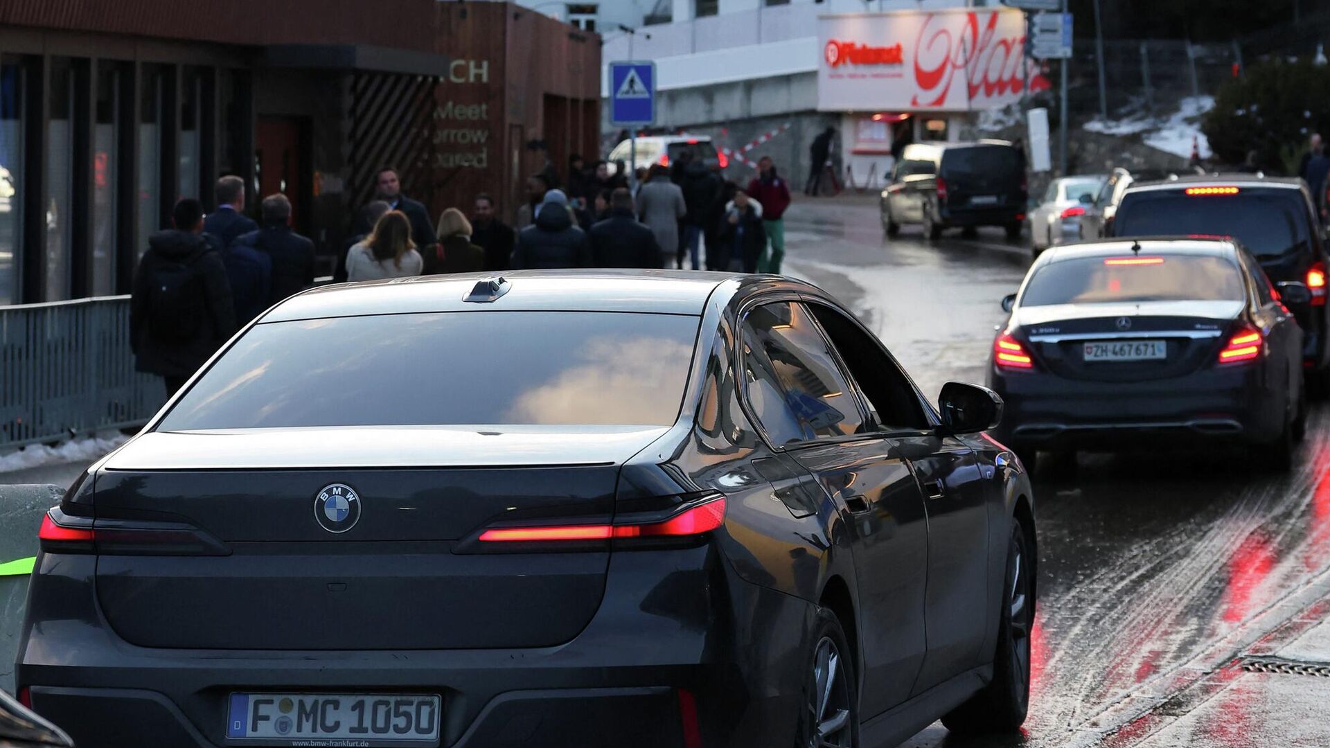 При этом движение автотранспорта на двух основных дорогах альпийского города затруднено. Гости форума прибывают на арендованных автомобилях с затемненными стеклами или на мини-шаттлах форума. Из-за них на улице скопились многокилометровые пробки.