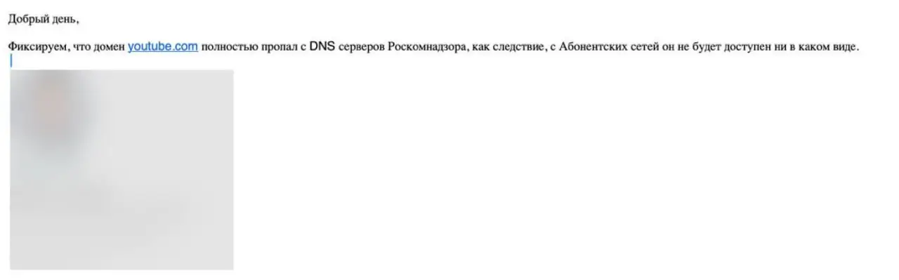 Эксклюзив: под шумок РКН решил добить и YouTube — наши источники среди провайдеров сообщают, что домен видеохостинга полностью пропал из DNS-серверов Роскомнадзора.