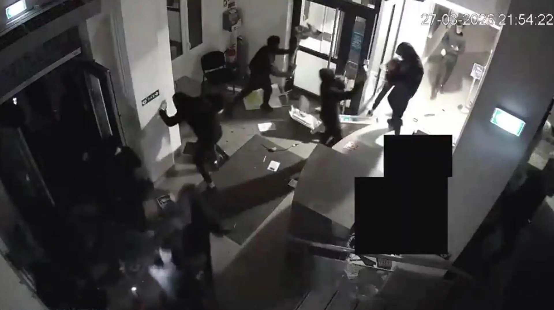 Убегая, злоумышленники украли из расположенной по соседству автошколы небольшой мотоцикл и нанесли ущерб ее фасаду, сообщает радиостанция. После этого они также повредили фасад банка.