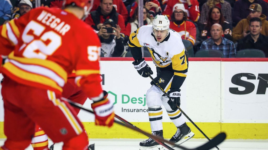 Встреча, которая прошла в Калгари, завершилась победой гостей со счетом 4:1 (1:0, 1:1, 2:0). У победителей отличились россияне Евгений Малкин (8-я минута), который еще отметился результативной передачей, и Егор Чинахов (33), а также Сидни Кросби (41) и Томас Новак (50). У хозяев шайбу забросил белорус Егор Шарангович (40).