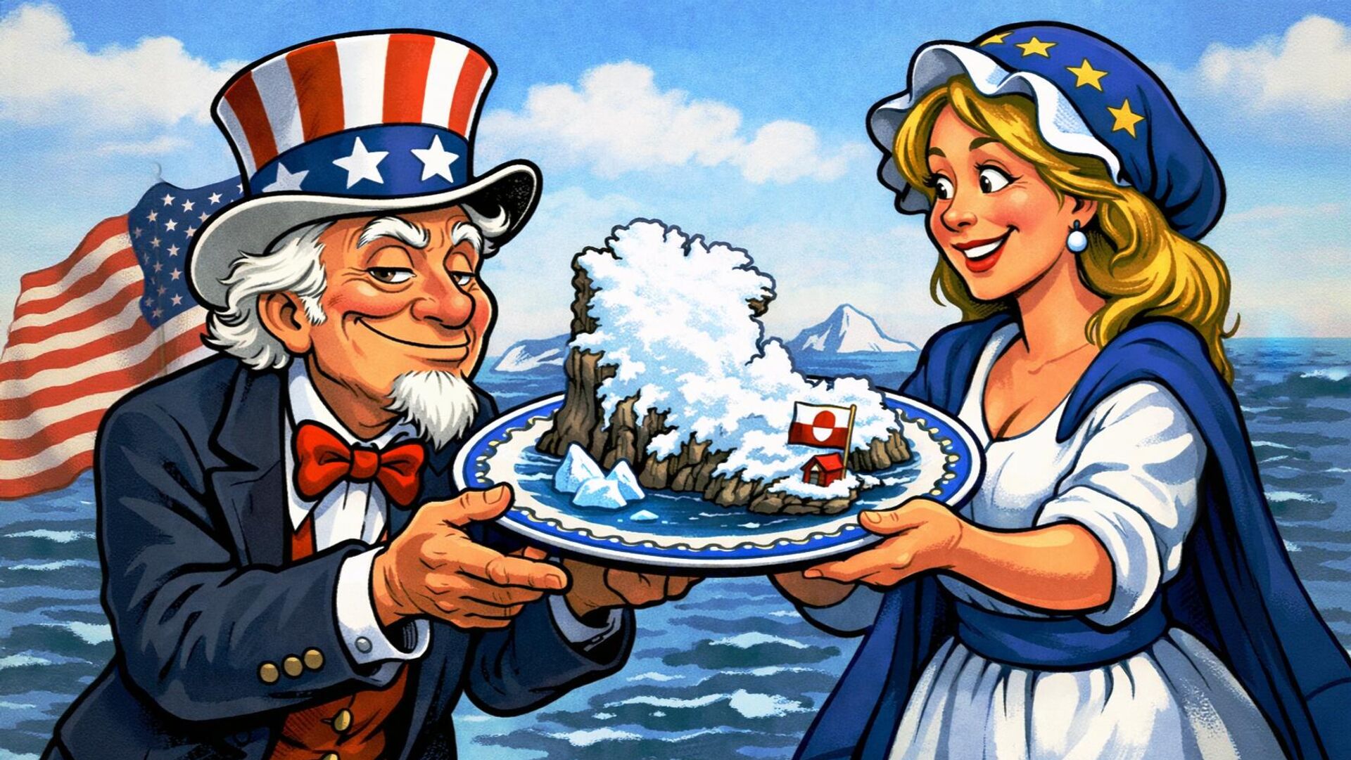 Честно говоря, это предложение похуже ультиматума: формально Трамп ничем не грозит Европе и НАТО (хотя обещание ввести санкции против стран, направивших своих военных в Гренландию, остается в силе), но вот это «запомним» звучит максимально зловеще. Особенно в ситуации, когда европейцы ждут от американцев гарантий по Украине, то есть обещаний защищать их «дранг нах Остен», цинично называемый «европейским выбором Украины». Защищать от русских, которые почему-то не хотят уступать Европе свои исторические территории. Гарантии Трамп давать не хочет — точнее, готов дать только те, которые исключат вероятность войны с Россией за Украину. Европейцам этого мало: в одиночку они Украину в своей орбите не удержат. Отсюда и бесконечный торг с Трампом на тему «железных гарантий» для Украины — Европе нужны американские, в Вашингтоне советуют делать упор на европейские. И тут — Гренландия.