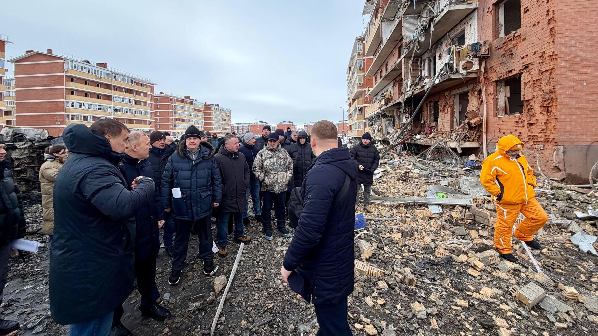 «Сейчас идет оценка ущерба. По предварительной информации, повреждены фасады и остекление нескольких домов ЖК «Виноград-2″. В разной степени ущерб нанесен 12 многоквартирным домам, некоторые квартиры получили значительные повреждения», — написал Кумпилов в Telegram.