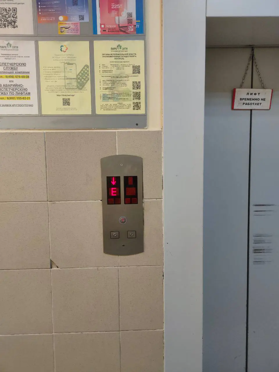 Местные часто жалуются в домовом чате на неисправный лифт. На фотографии один из дней, когда он в очередной раз сломался.
