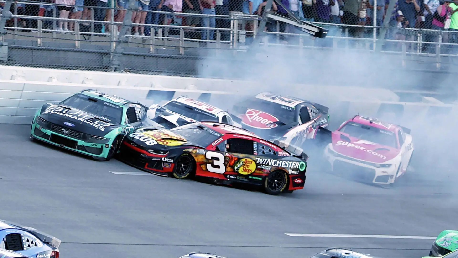 По данным организаторов, авария произошла в передней части пелотона, когда лидер гонки Бабба Уоллес получил сильный удар от Росса Честейна в конце прямой. От толчка машину Уоллеса занесло боком к внешнему защитному барьеру прямо перед гонщиком Коулом Кастером.
