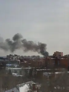 В соцсетях пишут, что здание полностью выгорело. Информация уточняется.