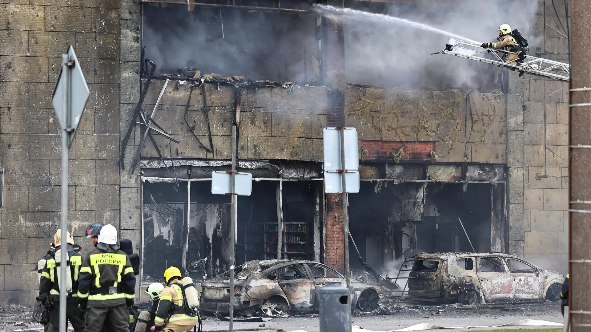 «Люди уже эвакуировались, уже и порядка пяти машин прибыло пожарных. Красной лентой подступы огородили, работали.. еще когда ехал в автобусе, видел, как скорая ехала туда. И две машины сгоревшие рядом со зданием были. Сгоревшие дотла», — сказал Андрей.