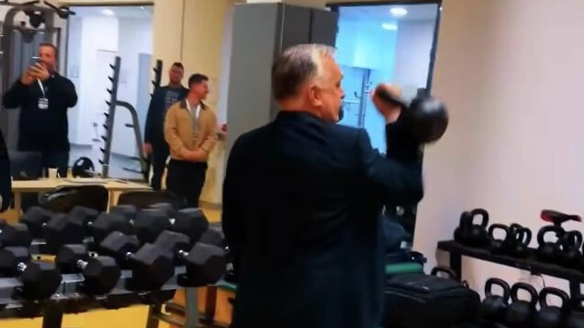 БУДАПЕШТ, 8 фев -. Премьер-министр Венгрии Виктор Орбан выложил видеозапись своей короткой тренировки перед встречей с избирателями в венгерском Сомбатхее, на ней он в костюме жмет гирю.