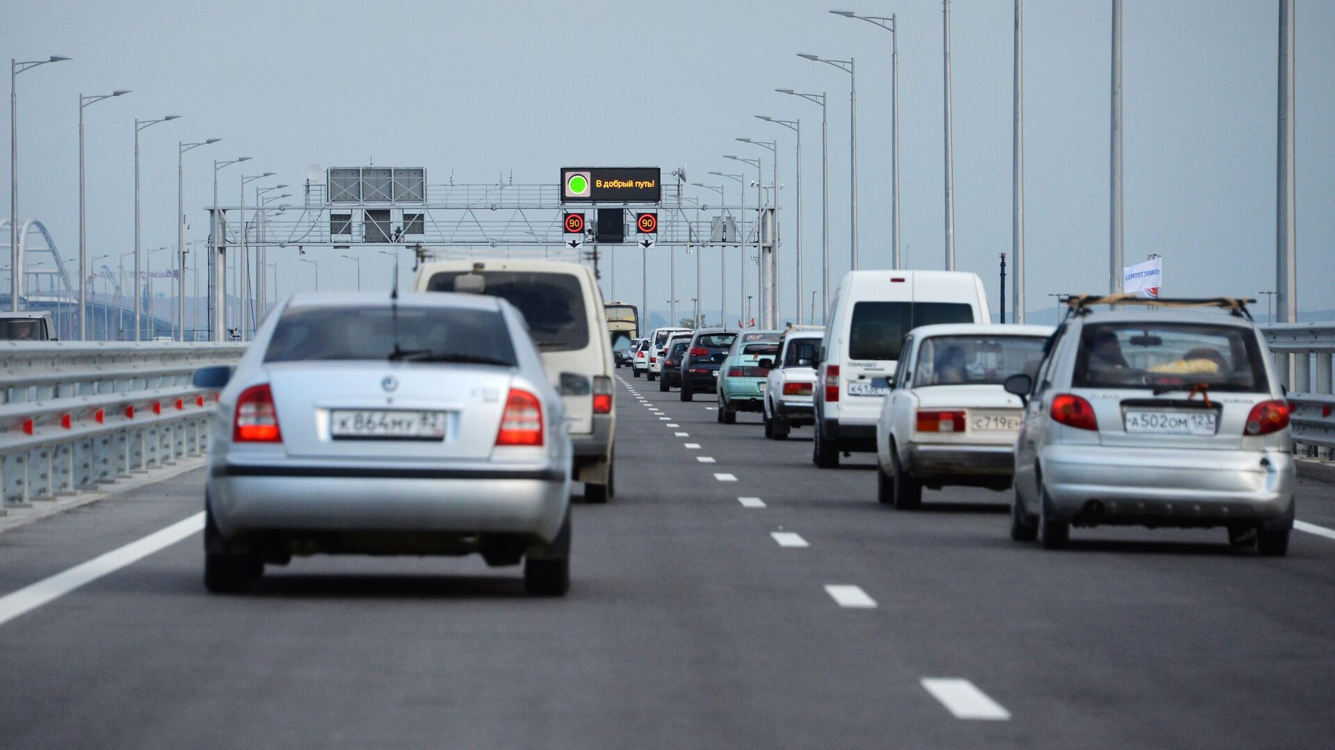 Посты досмотра установлены перед мостом в целях обеспечения безопасного проезда. Проезд разрешен легковым автомобилям, микроавтобусам и автобусам. Грузовой транспорт следует в Крым по маршруту через новые регионы или паромами через Керченский пролив.