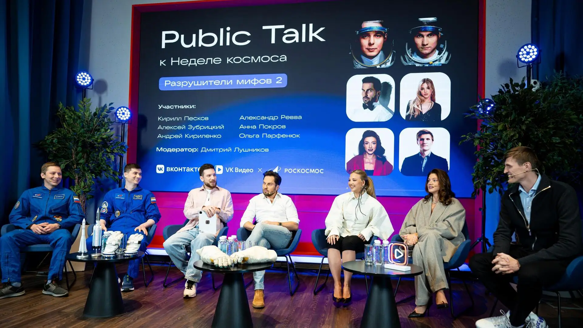 МОСКВА, 10 апр. ВКонтакте и Роскосмос представили проект «Разрушители мифов». Героями стали космонавты Кирилл Песков и Алексей Зубрицкий, актёр и шоумен Александр Ревва, блогер и актриса Анна Покров, комик и ведущая Ольга Парфенюк, баскетболист и президент Российской Федерации баскетбола Андрей Кириленко. Они обсудили сцены из фильмов о космосе и разобрали, где правда, а где вымысел.