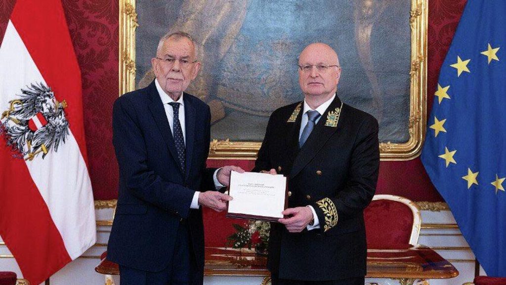 «Двадцатого января посол А.Ю.Грозов вручил верительные грамоты президенту Австрии А.Ван дер Беллену», — говорится в официальном аккаунте российской дипмиссии в соцсети Х.