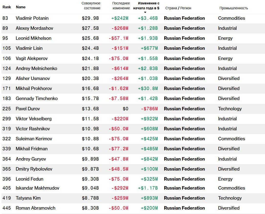 Проблемы в экономике не для всех — состояние самых богатых россиян за январь выросло на $19,4 миллиарда. Больше всех прибавил Владимир Потанин — $3,46 миллиарда. Андрей Мельниченко заработал $2,83 миллиарда, а Леонид Михельсон — $1,93 миллиарда