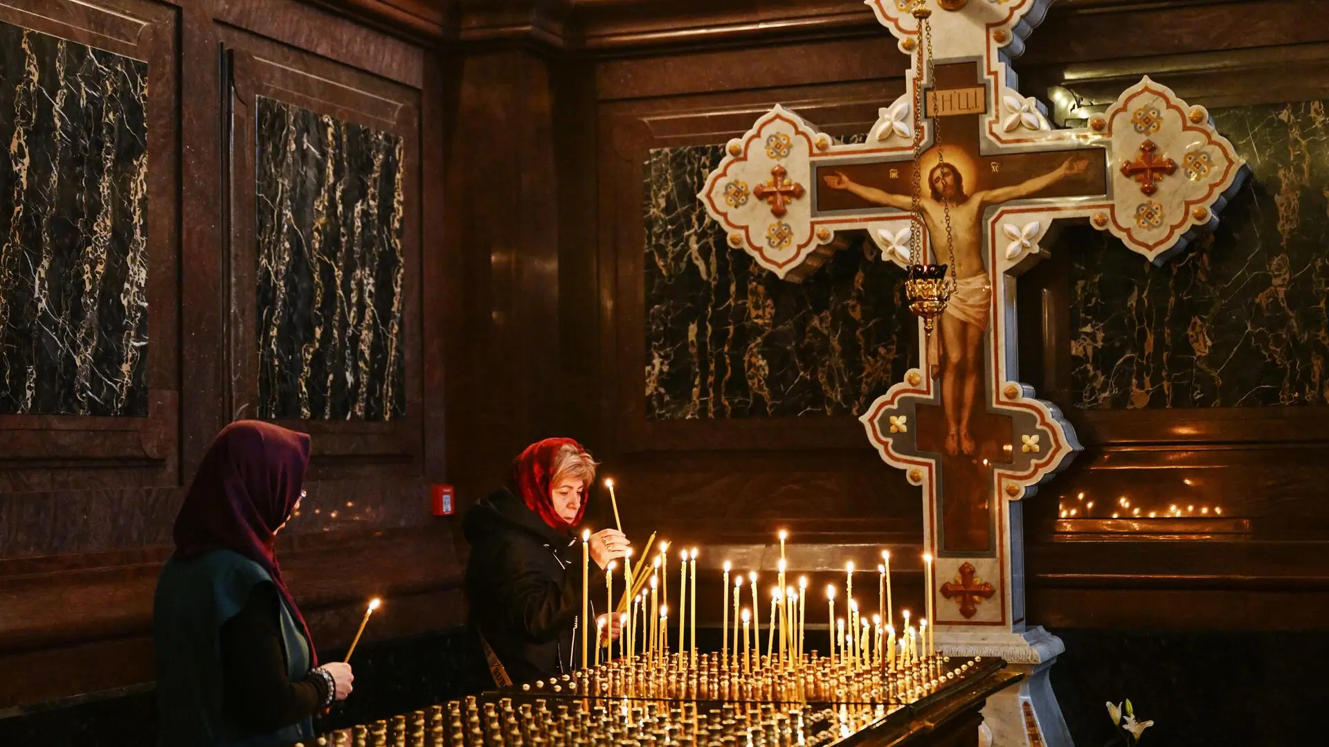 По его словам, в храмах в этот день совершают три богослужения: утром – часы Великой пятницы, когда еще раз после четверга читают главные тексты о последних днях жизни Спасителя. «Около двух часов дня в пятницу совершают вечерню с выносом в центр храма плащаницы – изображения тела спасителя, лежащего во гробе. На этой службе читается «Плач Божьей Матери у Креста Спасителя», когда вместе с Богородицей весь человеческий род произносит погребальную песню о Христе, лежащем во гробе», – пояснил священник.