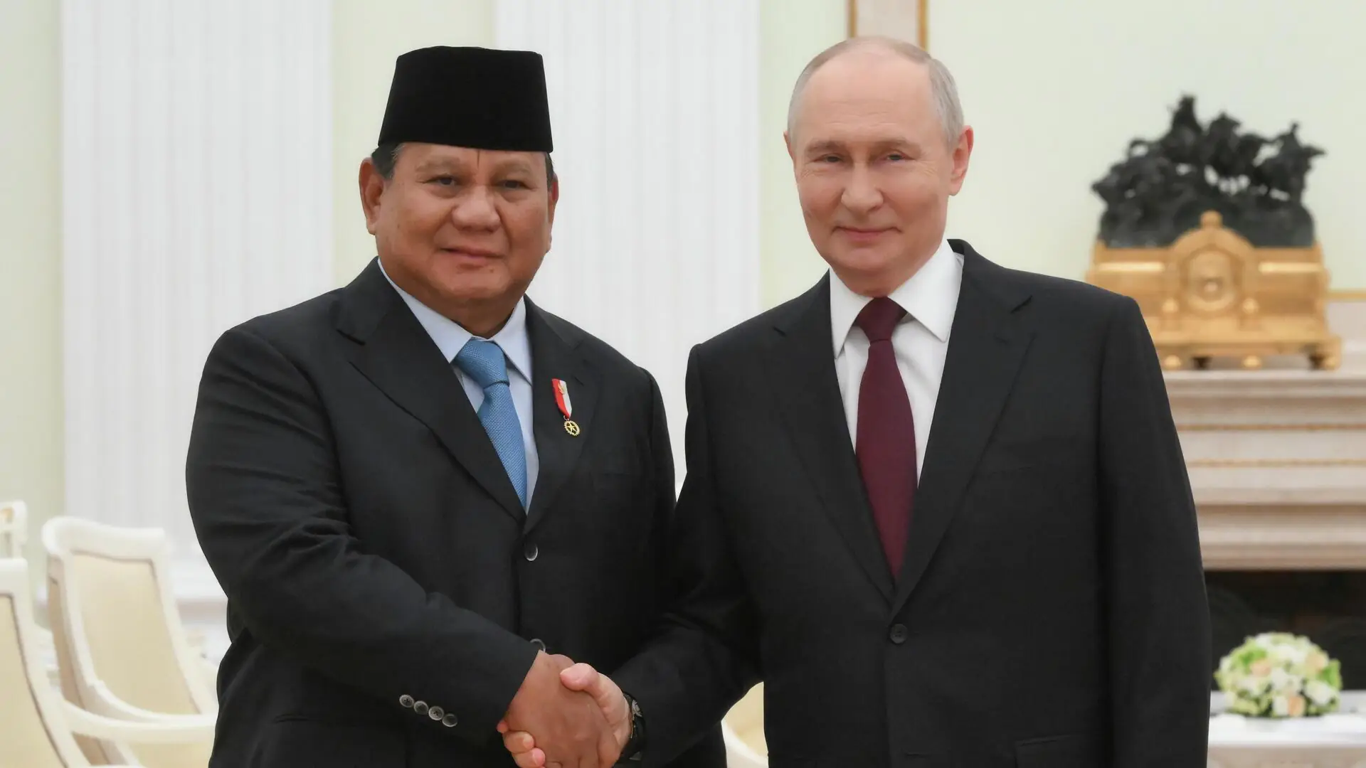 «Мне кажется, что ваш визит очень востребован и в сфере событий, которые в мире происходят, и с точки зрения укрепления и интенсификации наших двусторонних связей», — сказал Путин в ходе переговоров с Прабово Субианто в Кремле.