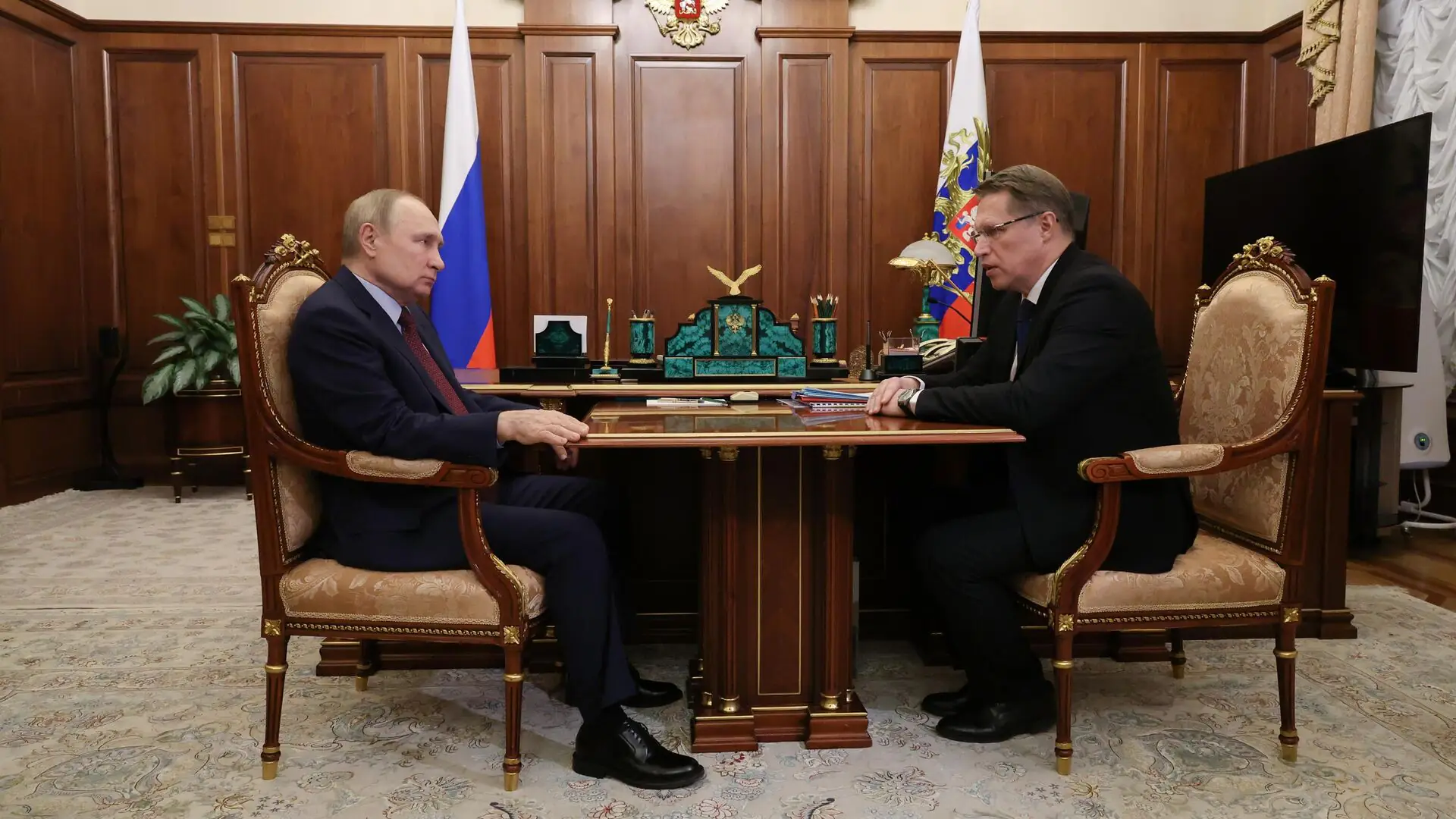МОСКВА, 28 апр -. Президент РФ Владимир Путин проводит встречу с министром здравоохранения России Михаилом Мурашко.