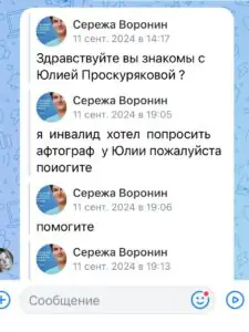 Юлия Проскурякова столкнулась с неадекватным фанатом. Ей уже долгое время приходят сообщения от незнакомца. Он пишет Юлии под разными именами и с разных аккаунтов. Где-то он представляется инвалидом, где-то режисером Петром Ягодкиным, якобы, Юлии предлагают сняться в фильме, а согласие дал сам Дмитрий Нагиев. Сталкер пишет её знакомым и друзьям. И всё это в надежде получить автограф от актрисы и её контакты.