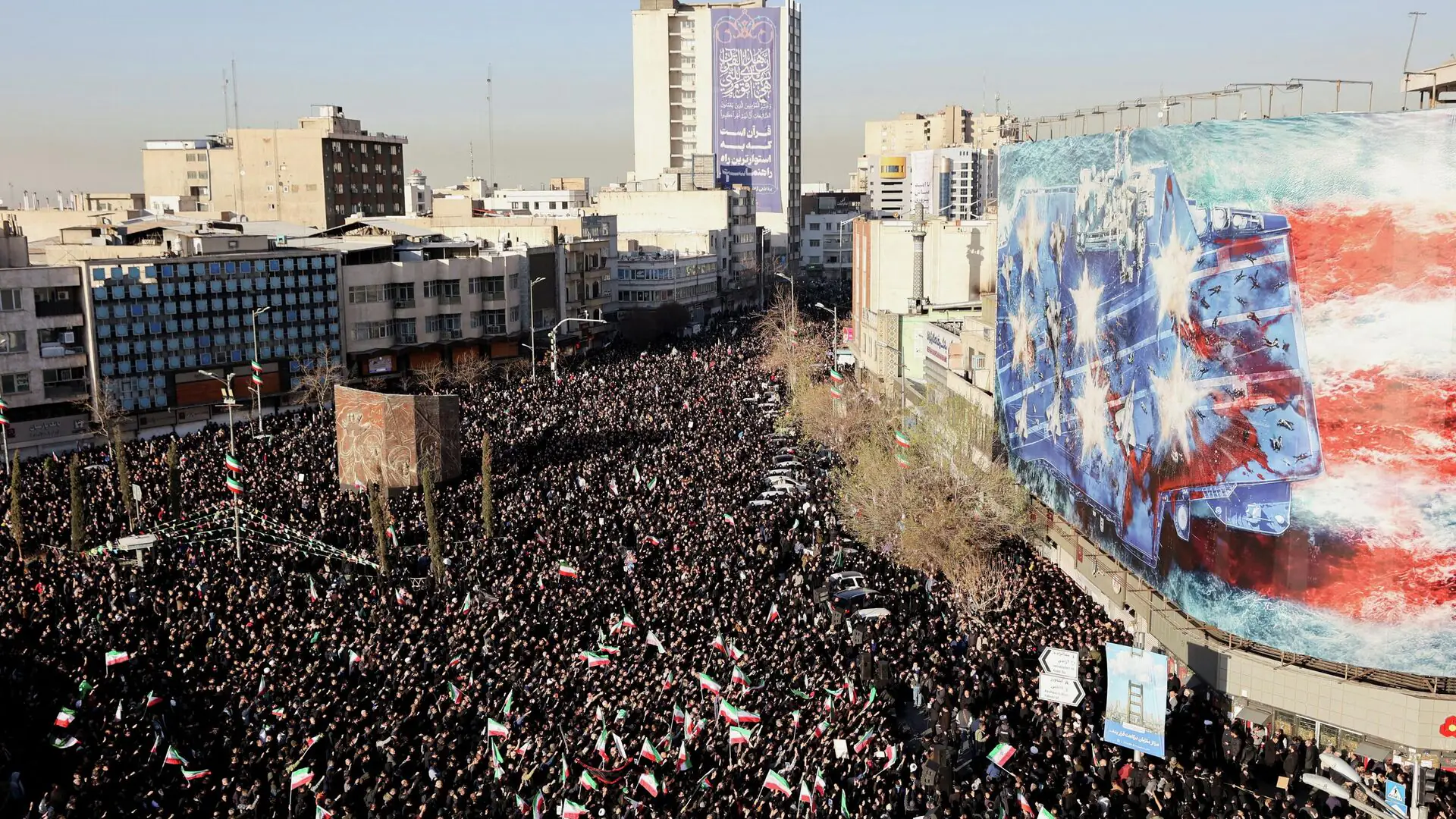 Жители столицы пришли с фотографиями верховного лидера и флагами Ирана.