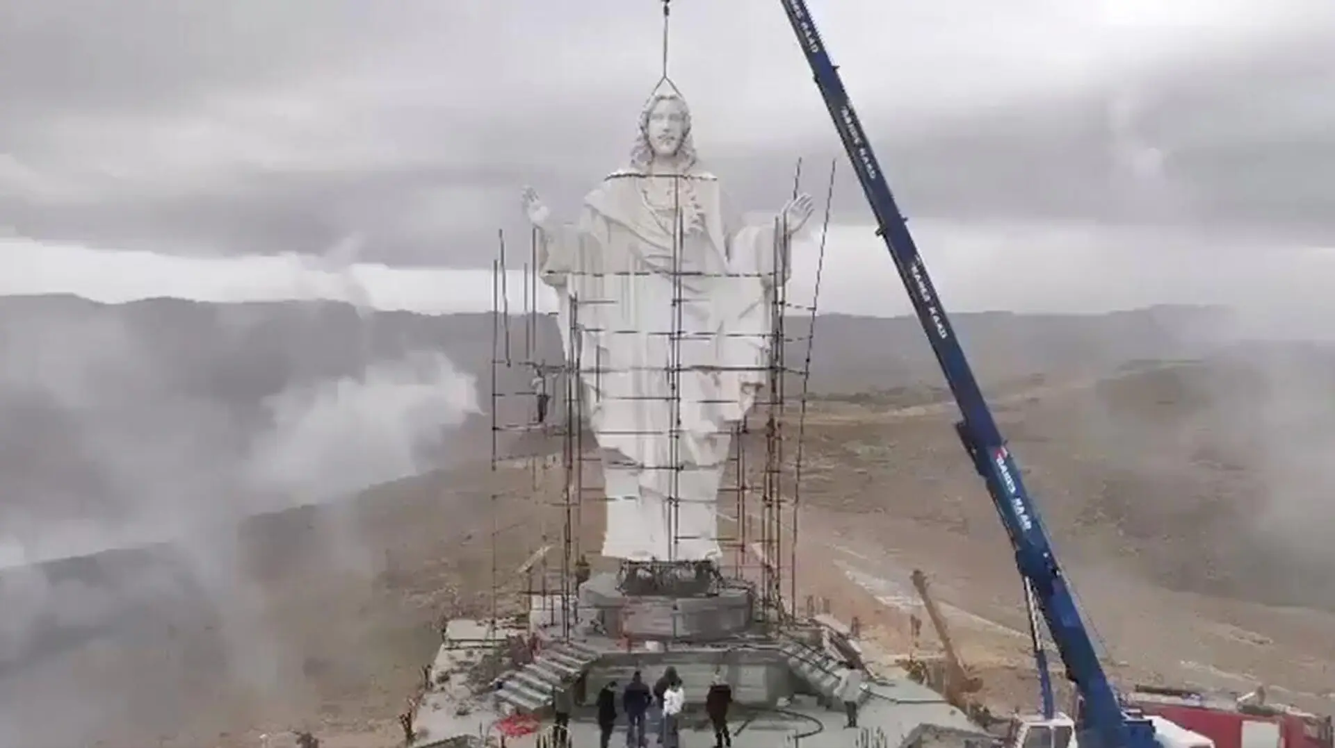 Собеседник агентства рассказал, что установленная в его родном поселении статуя состоит из основания высотой 10 метров и самой статуи 16 метров.