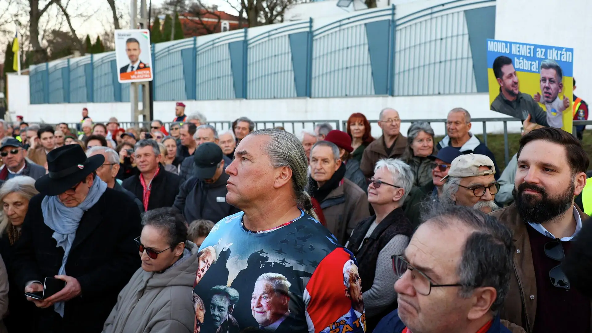 В протестном митинге приняли участие до тысячи человек. В руках они держали флаги Венгрии, плакаты с надписями «Украина — «государство» мафии» и изображения Владимира Зеленского и лидера венгерской оппозиционной партии «Тиса» Петера Мадьяра на фоне украинского флага с подписью «Скажи «нет» украинской марионетке».