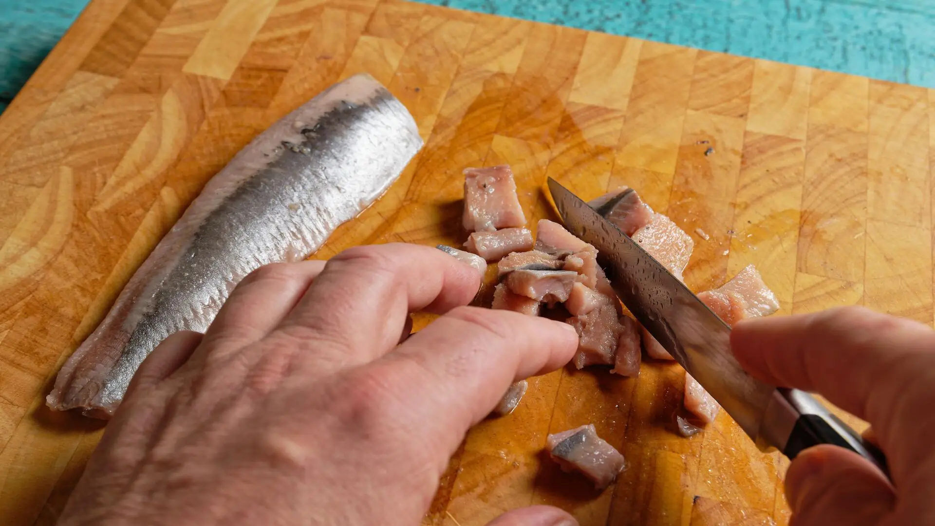 Так, селедку нужно изготавливать из полностью выпотрошенной рыбы, разделав ее на филе без костей и кожи, а затем нарезав на небольшие поперечные ломтики.