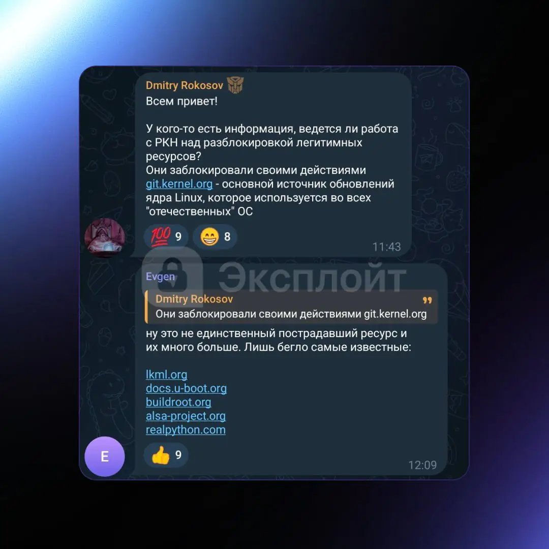 РКН случайно заблокировал Linux в России — теперь для обновления ядра разработчикам отечественных ОС приходится включать VPN.