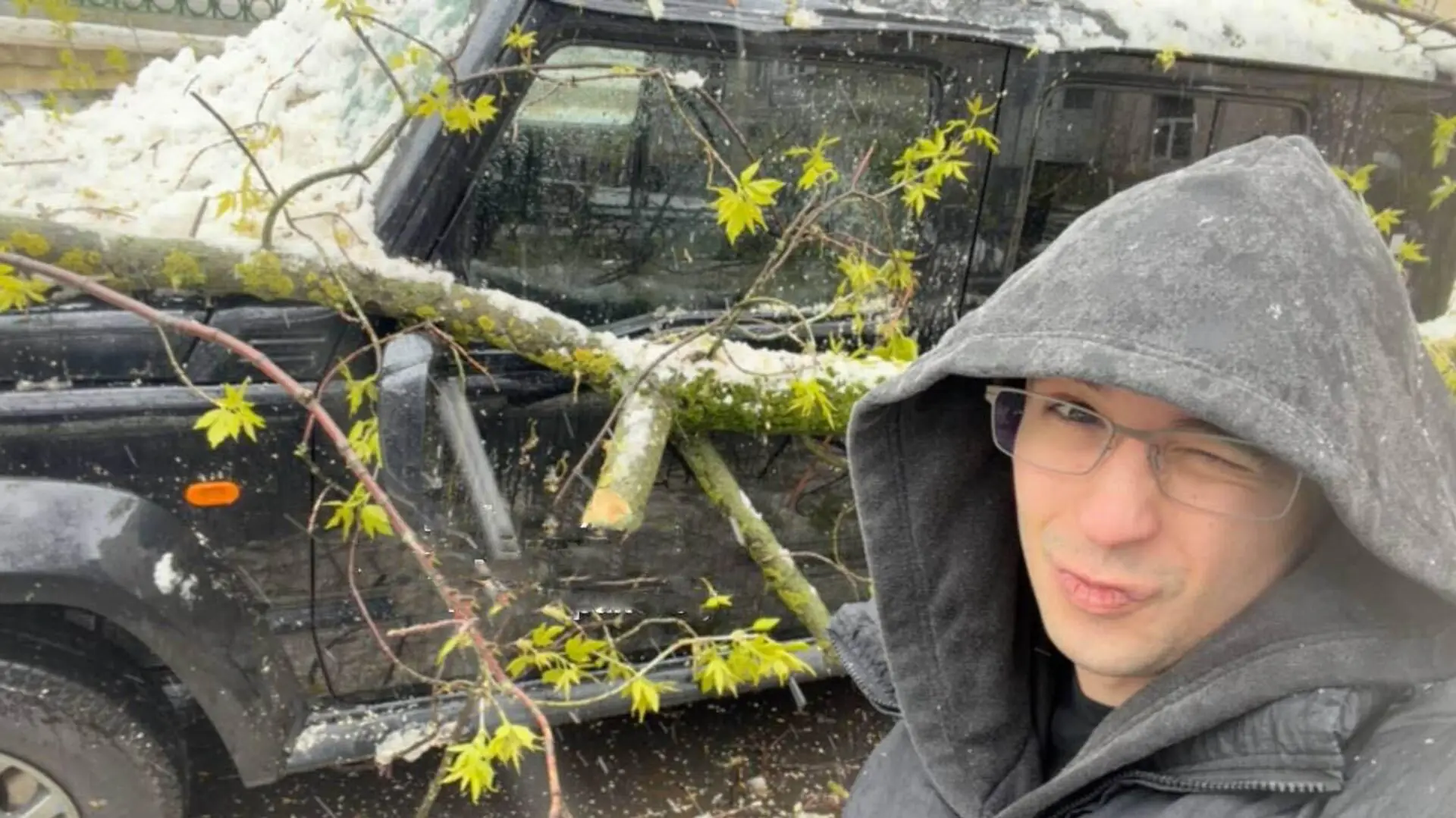 МОСКВА, 27 апр -. Российский рэп-исполнитель Slava Marlow (Артем Готлиб) показал фото поврежденной после падения дерева машины в результате сильного снегопада в Москве, отметив, что оформил страховой полис.