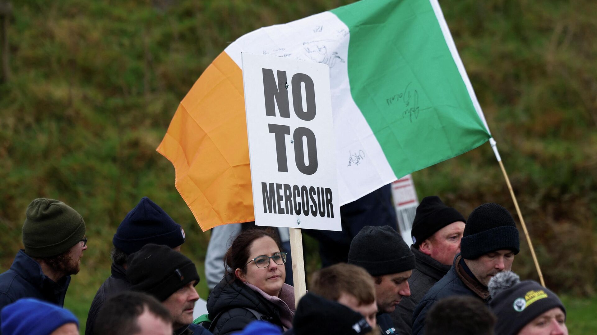 «Тысячи фермеров собрались на акцию протеста с использованием тракторов в рамках общенациональной демонстрации и митинга в Атлоне против соглашения между ЕС и Меркосур», — говорится в сообщении RTE.