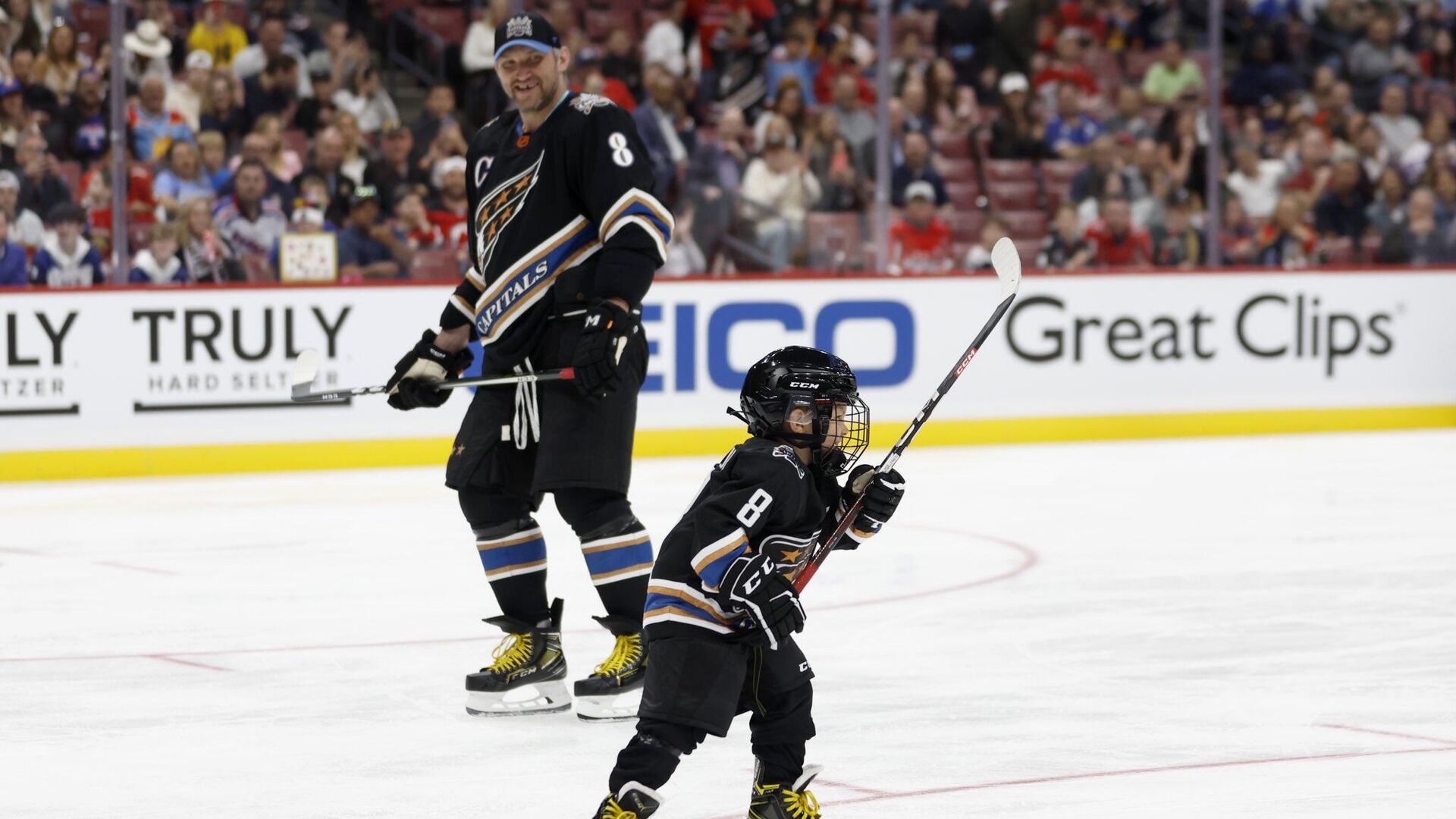 «Первая игра для Овечкина-младшего на стадионе «Кэпиталз» с лучшей поддержкой», — написала супруга хоккеиста Анастасия в Instagram (принадлежит Meta, деятельность которой запрещена в России как экстремистская).