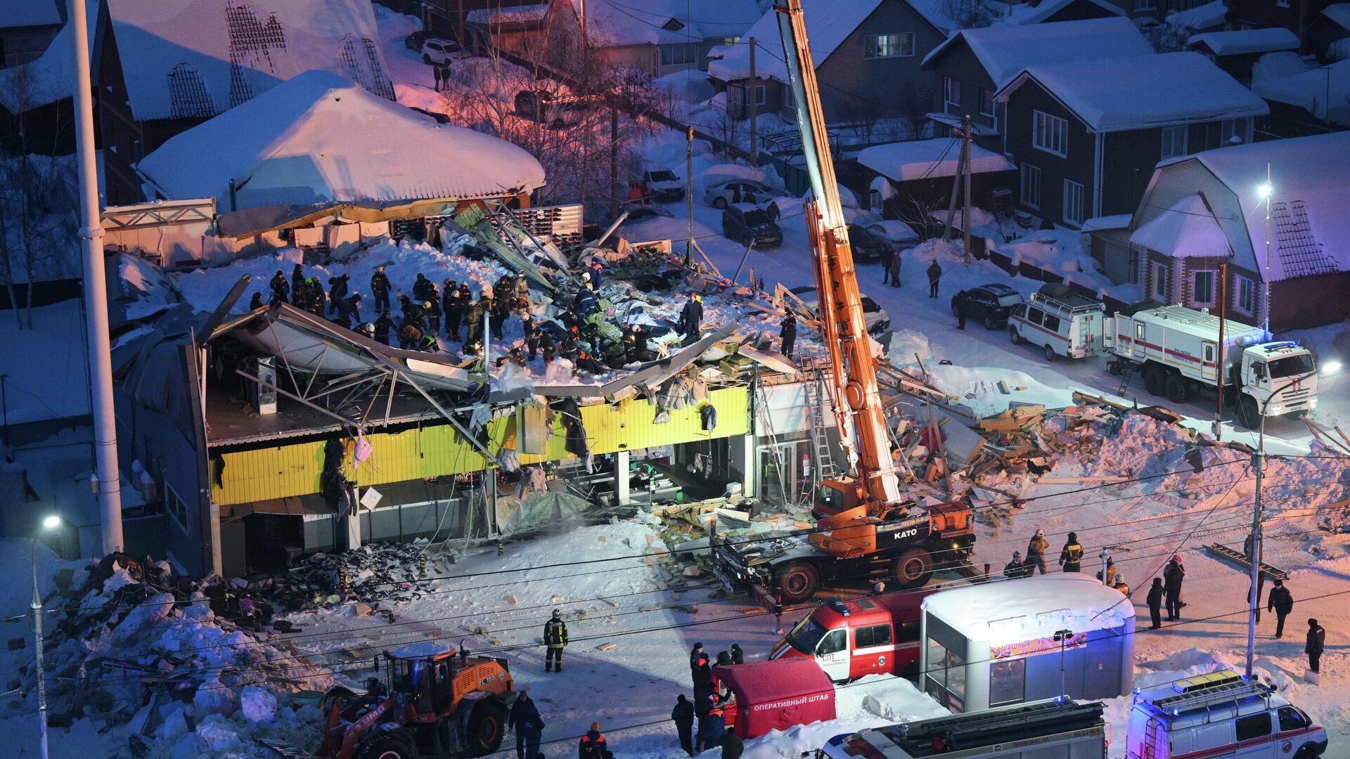 Обрушение конструкций крыши на площади 600 квадратных метров и второго этажа двухэтажного здания торгового центра произошло в среду в Новосибирске на улице Наумова, предварительно, из-за скопившегося снега. Пострадали два человека. Еще одного пострадавшего из-под завалов вытащили спасатели, после 30 минут реанимационных мероприятий он скончался.