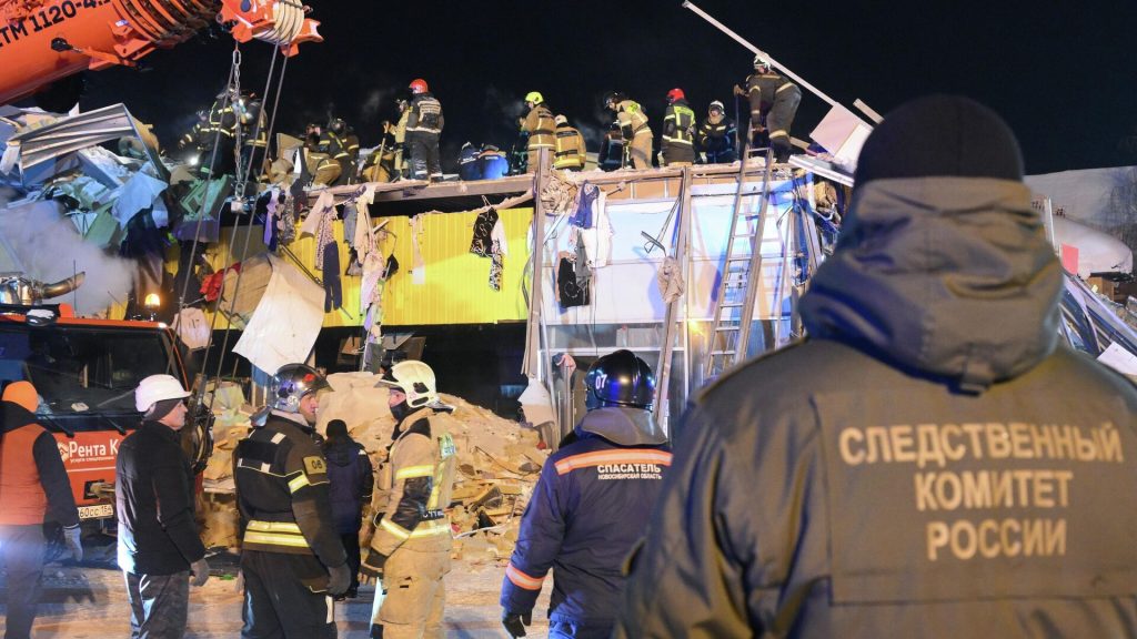 Обрушение конструкций крыши на площади 600 квадратных метров и второго этажа двухэтажного здания торгового центра произошло в Новосибирске на улице Наумова в среду, предварительно, из-за скопившегося снега. Пострадали две женщины, одна из которых госпитализирована. Еще одного пострадавшего из-под завалов вытащили спасатели, однако после 30 минут реанимационных мероприятий мужчина скончался.