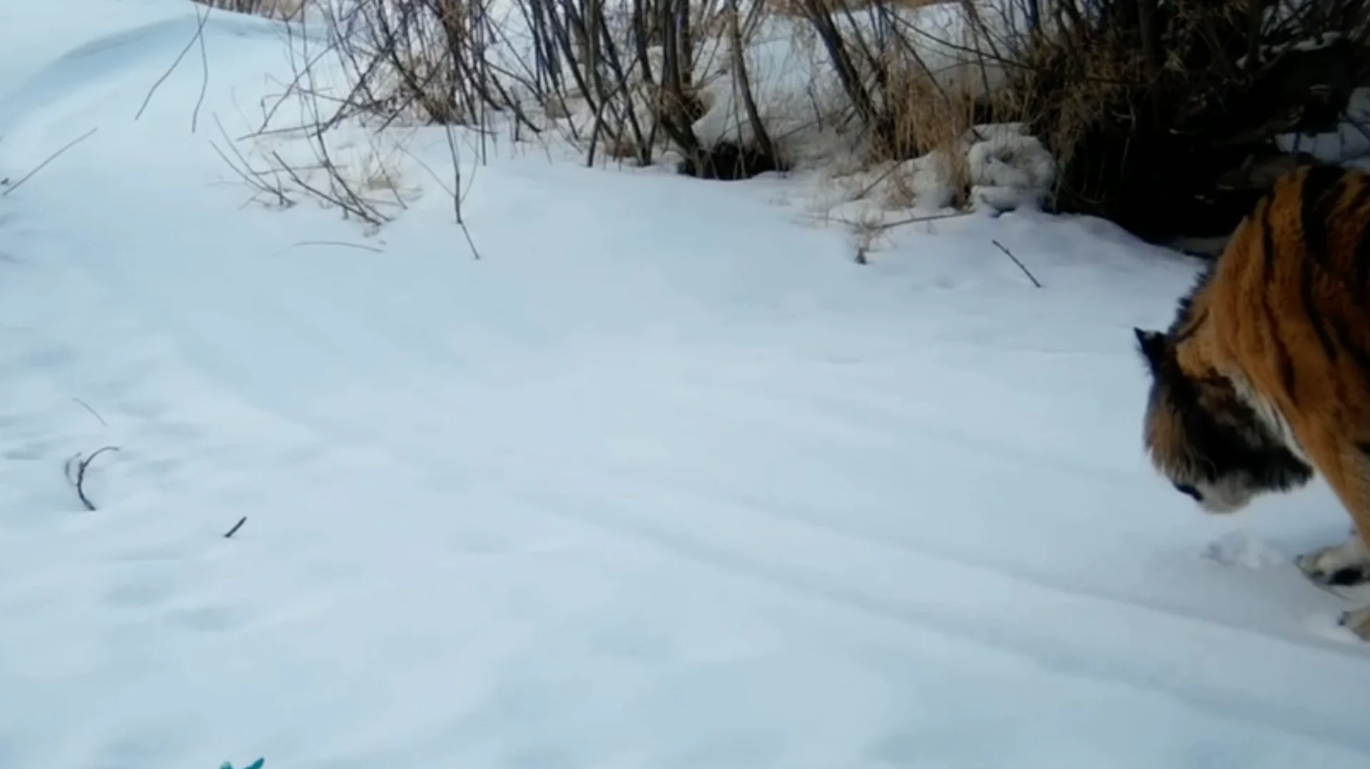 Видео снято в ходе мониторинга мест обитания тигра в Амурской области, который проводится при поддержке Центра «Амурский тигр».