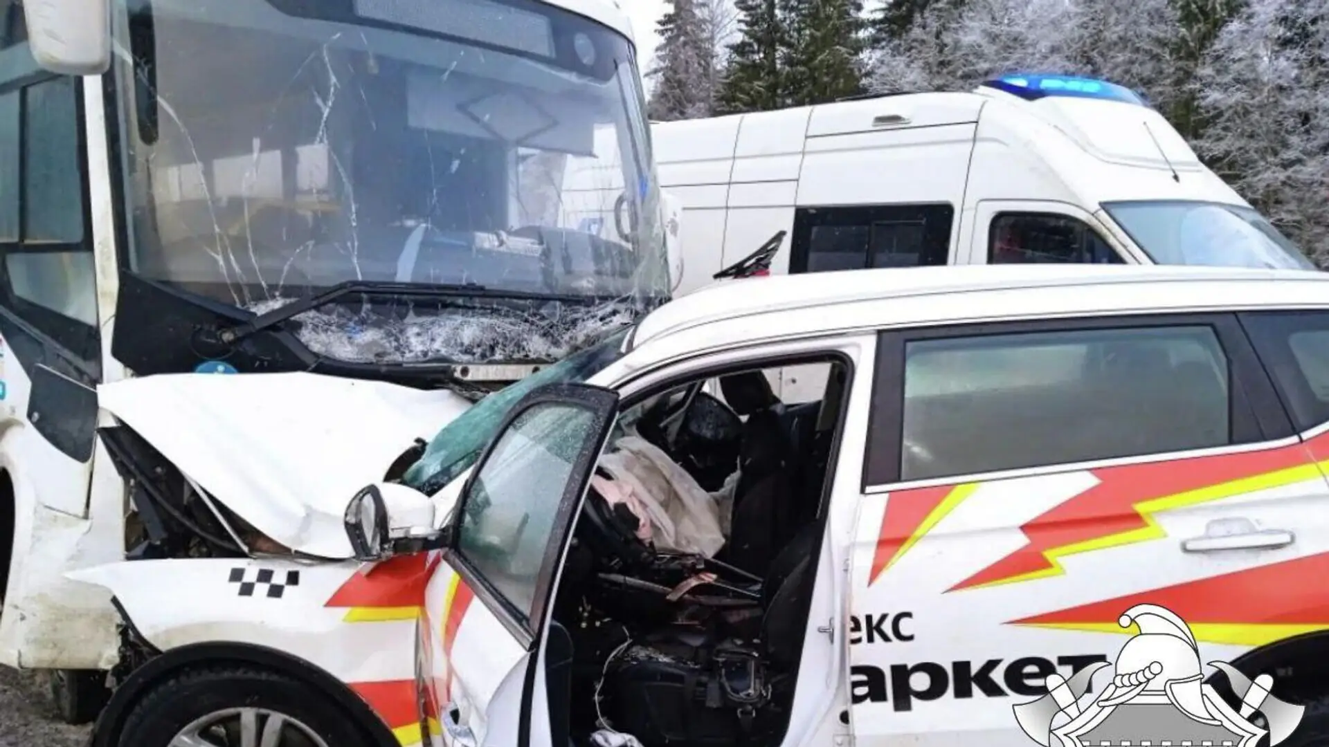ДТП произошло на 66-м километре трассы А-180 Нарва в Волосовском районе. Произошло лобовое столкновение рейсового автобуса, следующего по маршруту №888 и легкового автомобиля Chery Tiggo (такси).