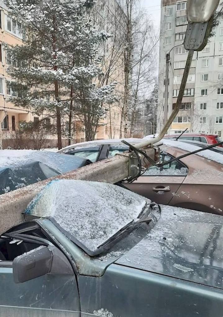Сразу после этих слов грузовик снёс фонарный столб на припаркованные машины. Инцидент произошёл в Ленобласти