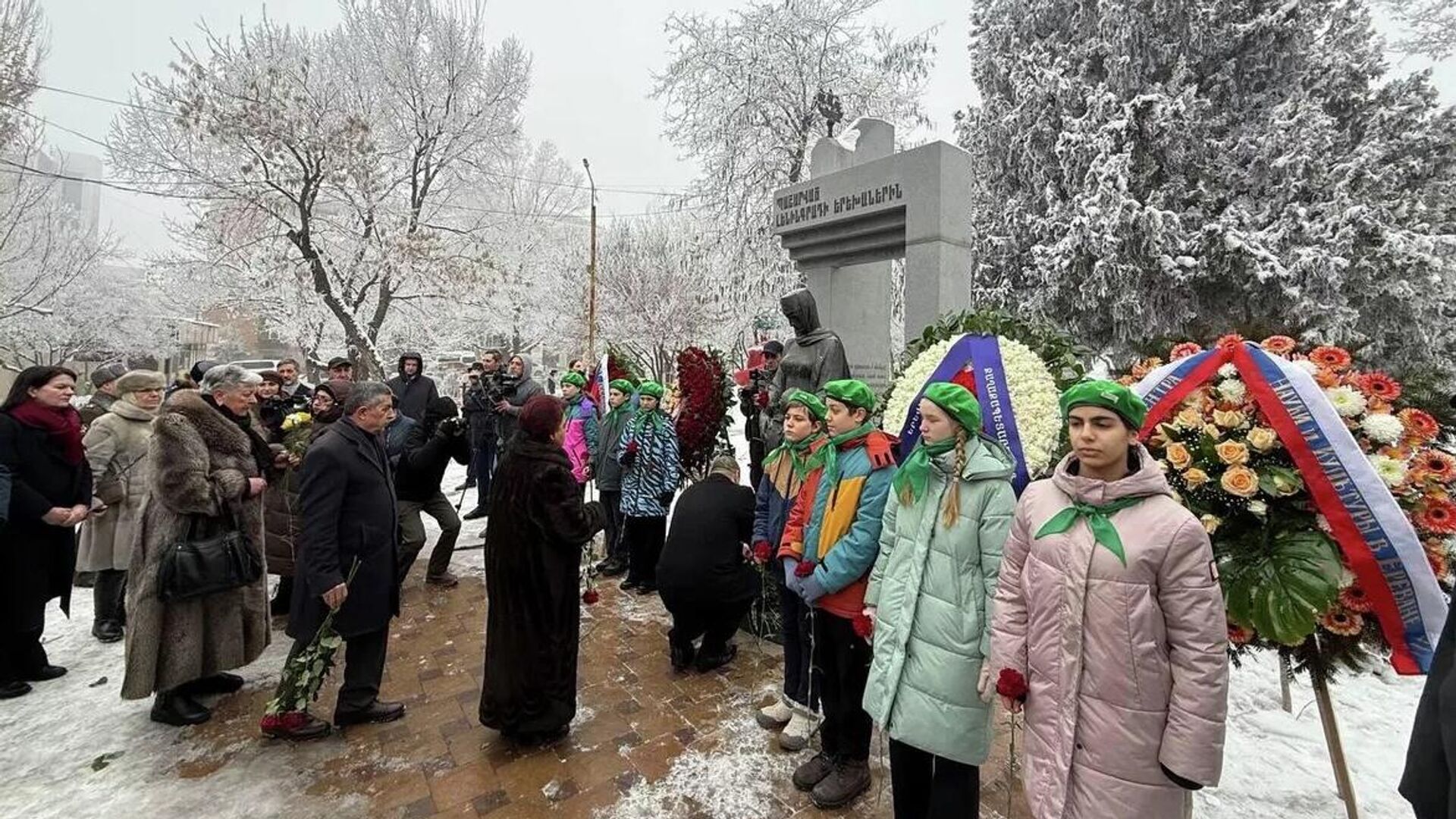 У памятника детям блокадного Ленинграда в Ереване собрались российские дипломаты, сотрудники представительства Россотрудничества в республике, представители молодежных, общественных организаций, ветераны, блокадники, военнослужащие российской военной базы и погрануправления ФСБ России в Армении, жители столицы.