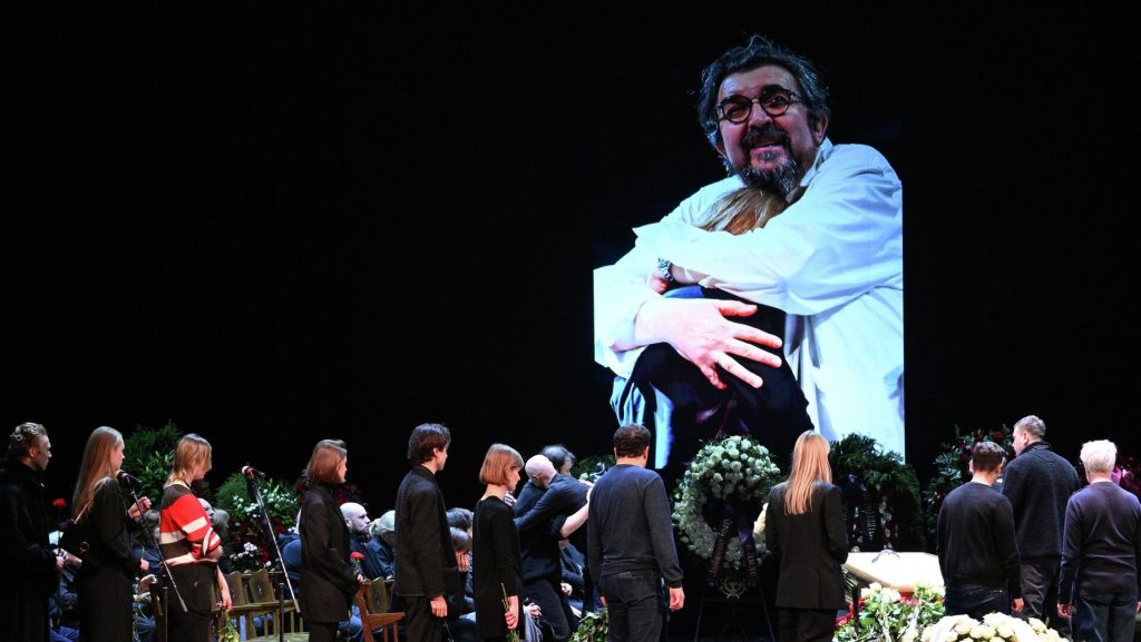 Друзья, коллеги и поклонники Золотовицкого приходят к театру, чтобы проститься с артистом. Они несут цветы и ждут возможности проводить его в последний путь.