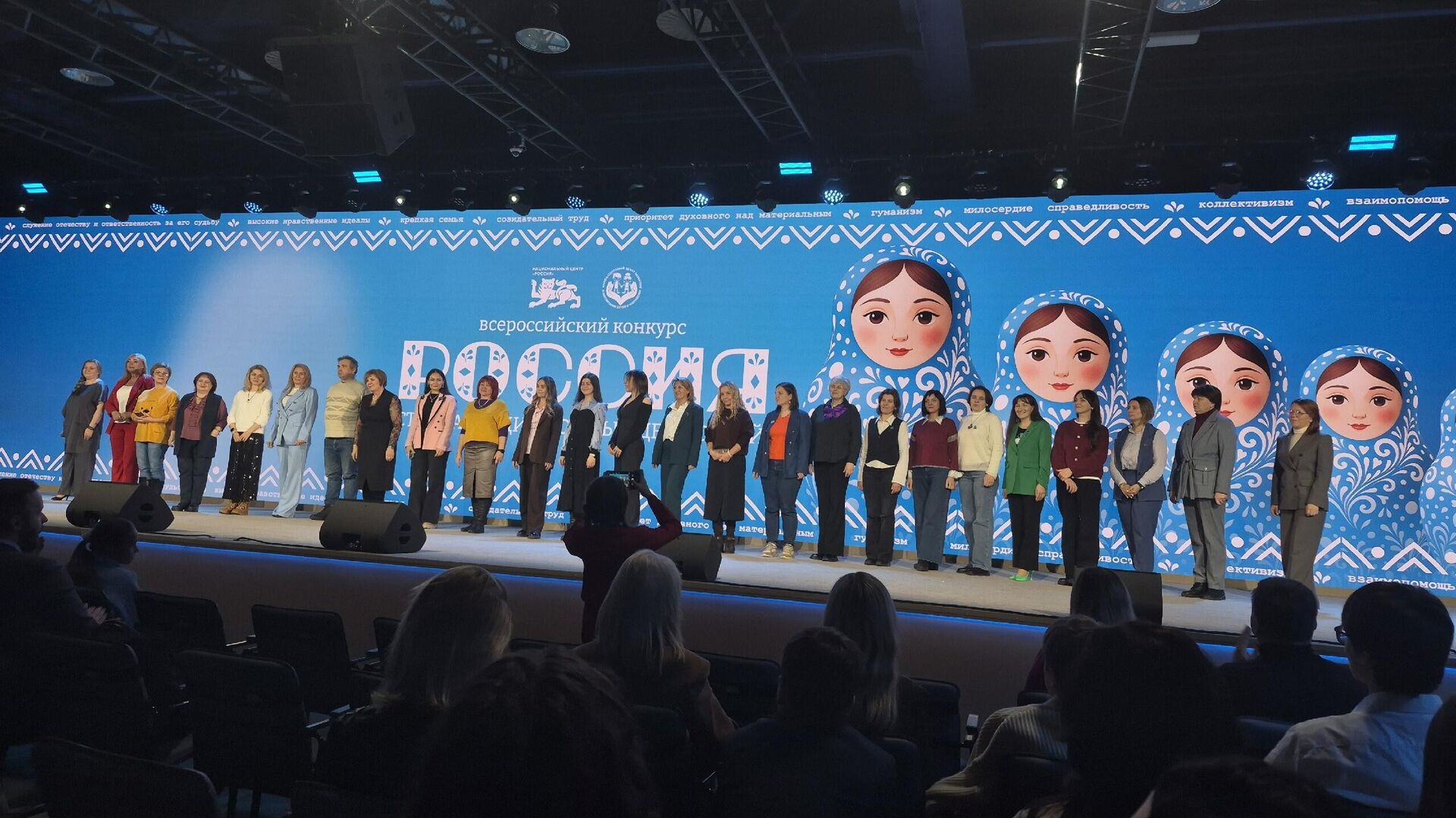 «Мы собрались здесь все вместе — люди разных возрастов, поколений, разных вероисповеданий, из разных регионов России, даже из разных стран мира — для того, чтобы всем вместе высказать, как сильно любим мы нашу родину, нашу Россию. Для меня Россия — это прежде всего люди, которые поддерживают, которые дарят добро, особенно те, которые защищают сейчас нашу страну на специальной военной операции на зоне боевого соприкосновения», — сказала заместитель генерального директора Национального центра «Россия» Анастасия Звягина.