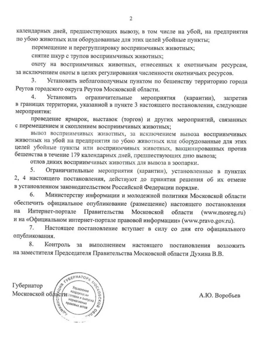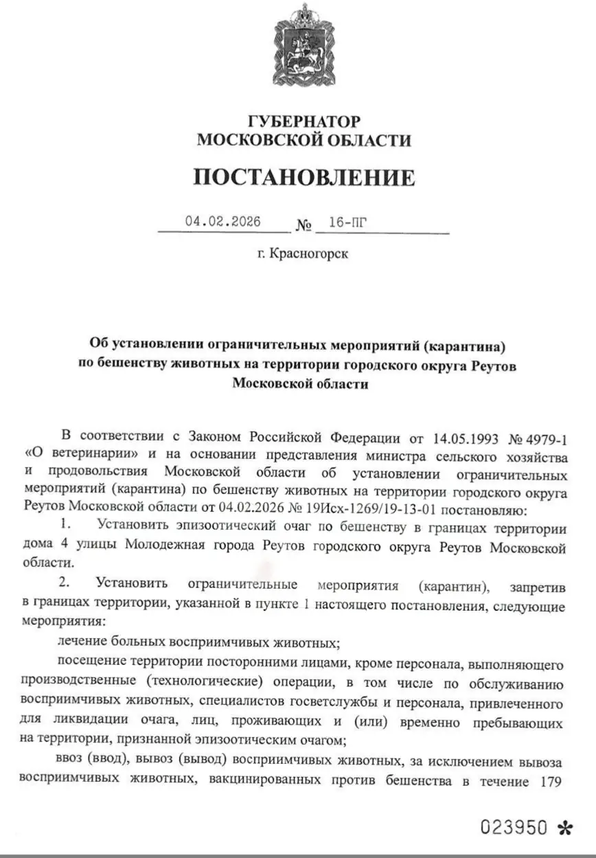В подмосковном Реутове объявили карантин: весь город признан неблагополучной зоной по бешенству. Очаг заболевания выявлен у дома №4 на улице Молодёжной, сообщили власти