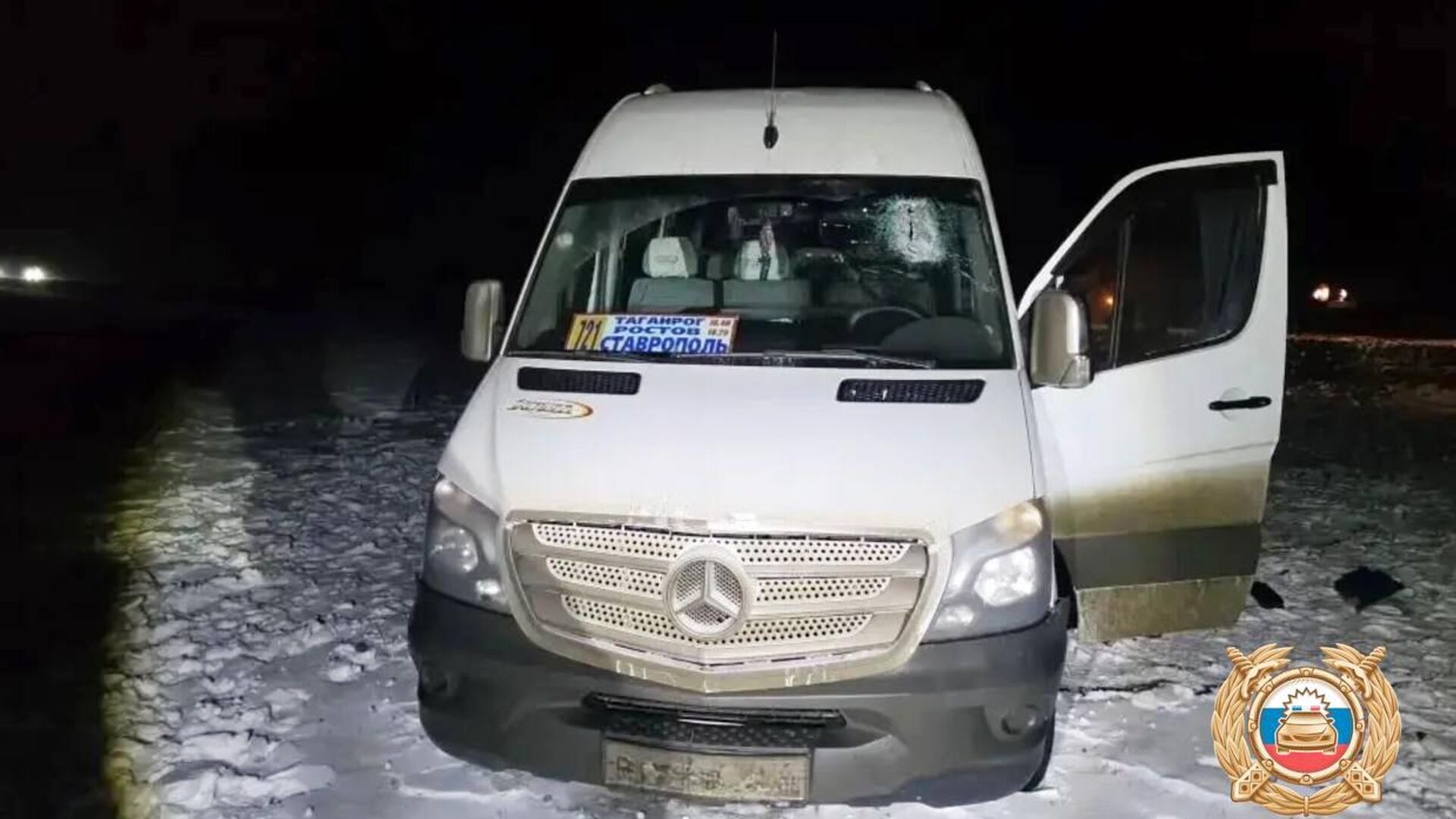 ДТП произошло в четверг вечером на 73-м километре автодороги в Егорлыкском районе. Как уточнили в ведомстве, кусок льда влетел в лобовое стекло автобуса, следующего по маршруту «Ростов — Ставрополь», после чего транспортное средство съехало в кювет.
