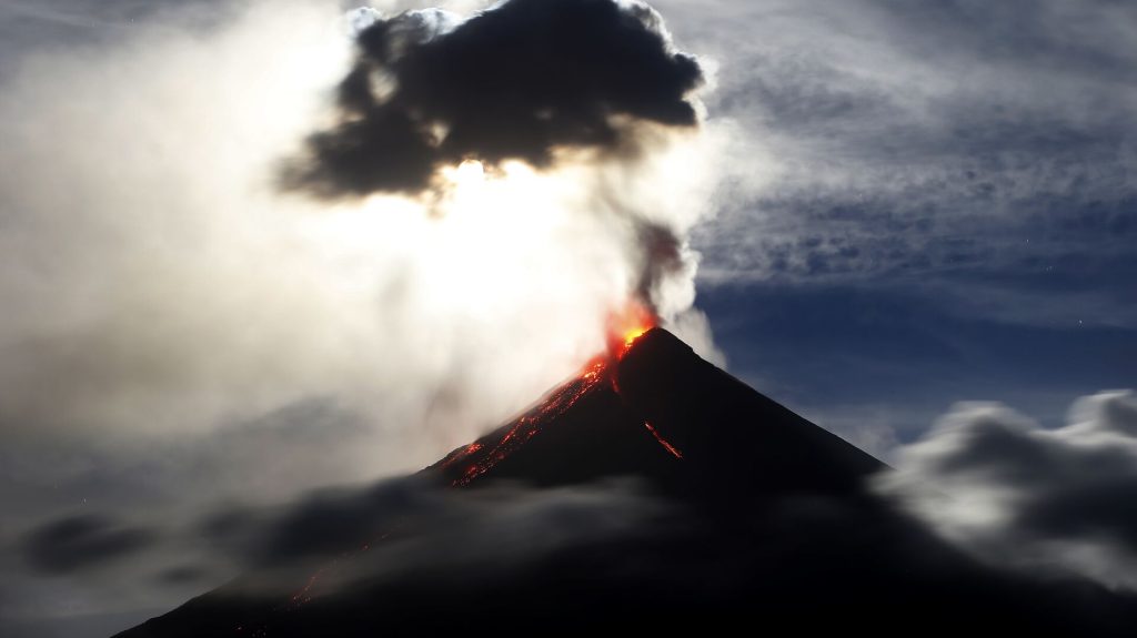 Майон – активный вулкан Филиппин, располагается на острове Лусон. Высота кратера вулкана достигает 2462 метра. NDRRMC опубликовал в социальных сетях видеозапись извержения.