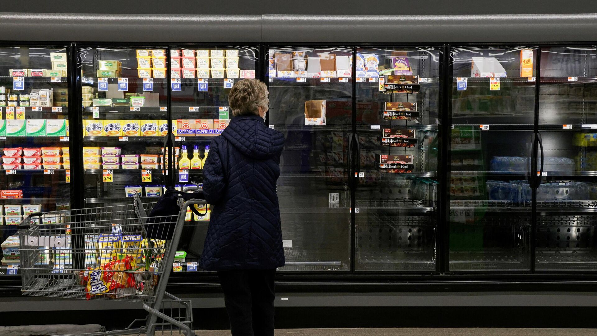 Вашингтонцы, которые не успели закупиться, ходят по магазинам в растерянности, выбирая из остатков продуктов.